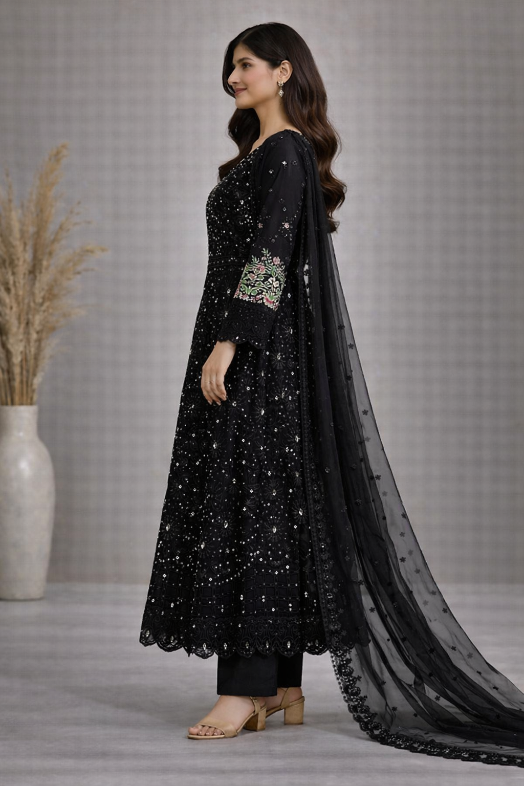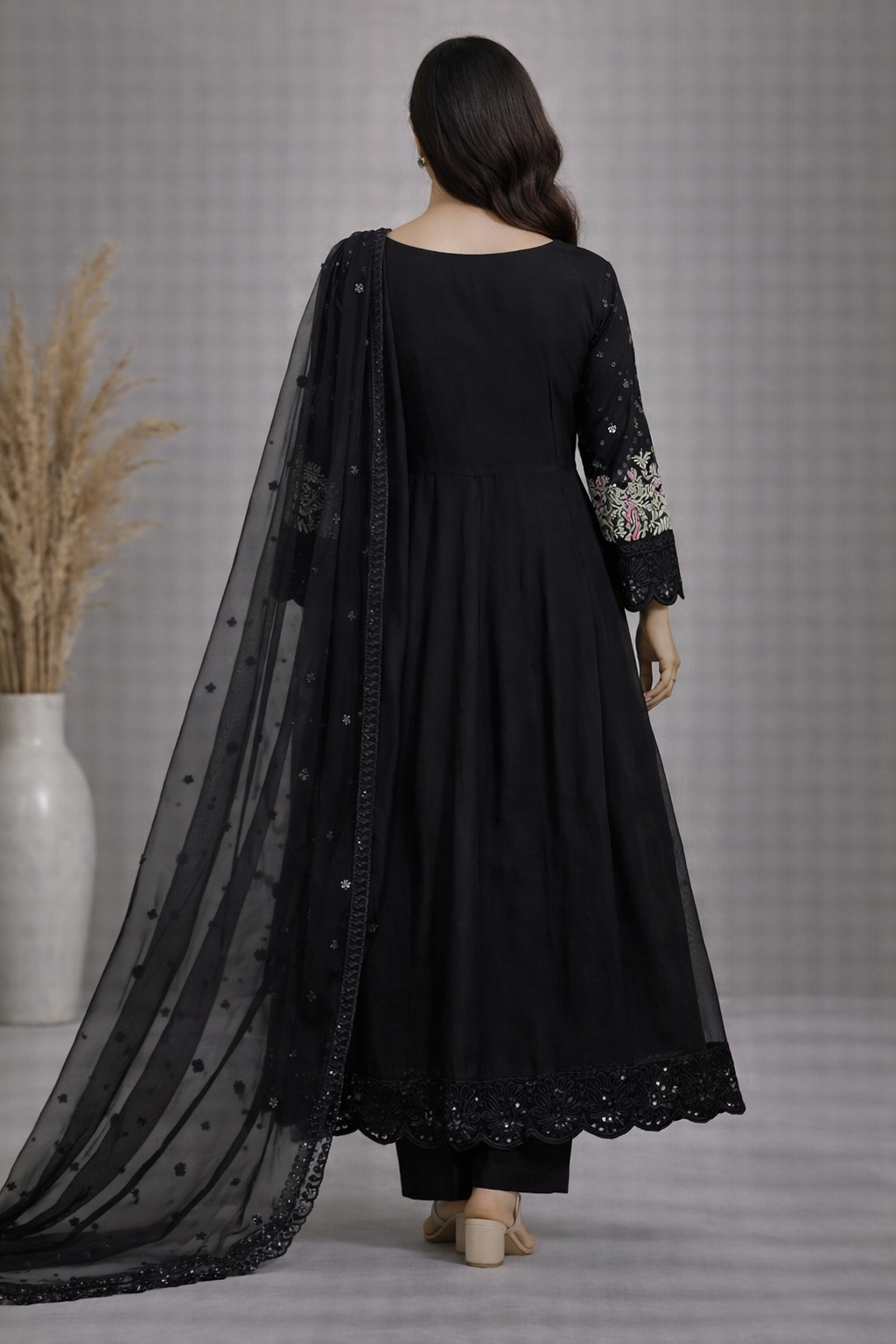 - Work Technique: Thread Embroidery with Sequins & Stone Embellishments