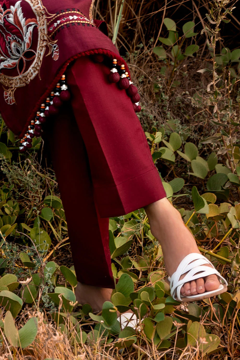 - Embroidered Khaddar Shirt Front, Back & Sleeves with Embroidered Borders for Front & Back. Pockets Lace - 2.8 Meters